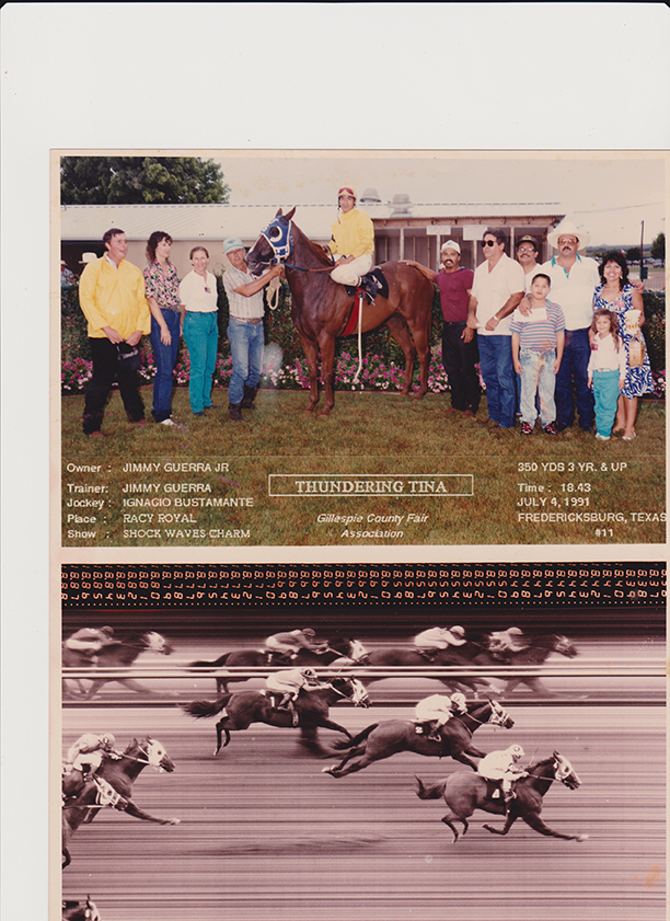 Oh wow well we won all them big races with her. She made the horse of the year here in Texas like in the 80's… eighty something. I don't remember. At the track they gave her a ceremony, in Bandera…Bandera Downs.