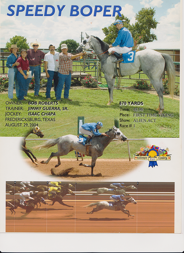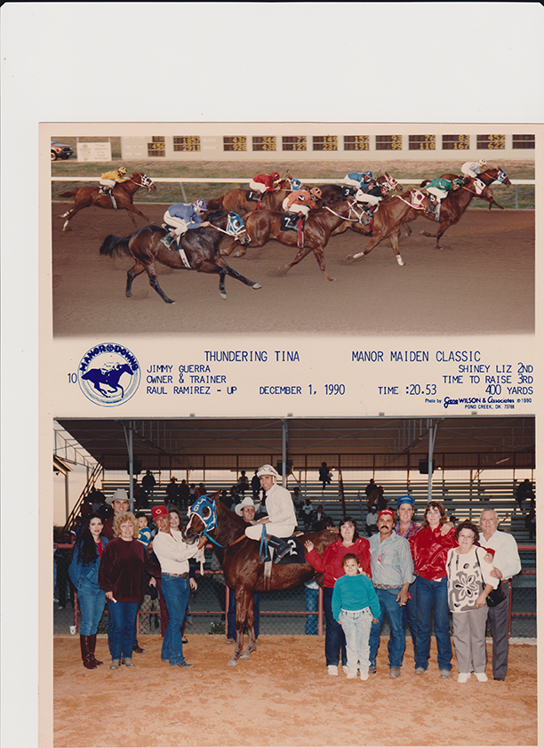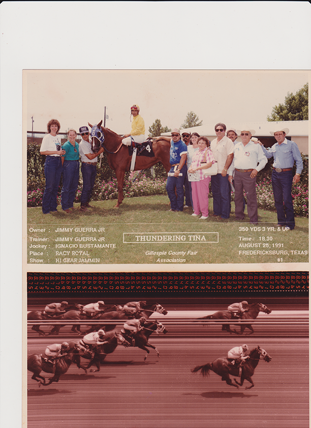 Oh wow well we won all them big races with her. She made the horse of the year here in Texas like in the 80's… eighty something. I don't remember. At the track they gave her a ceremony, in Bandera…Bandera Downs.