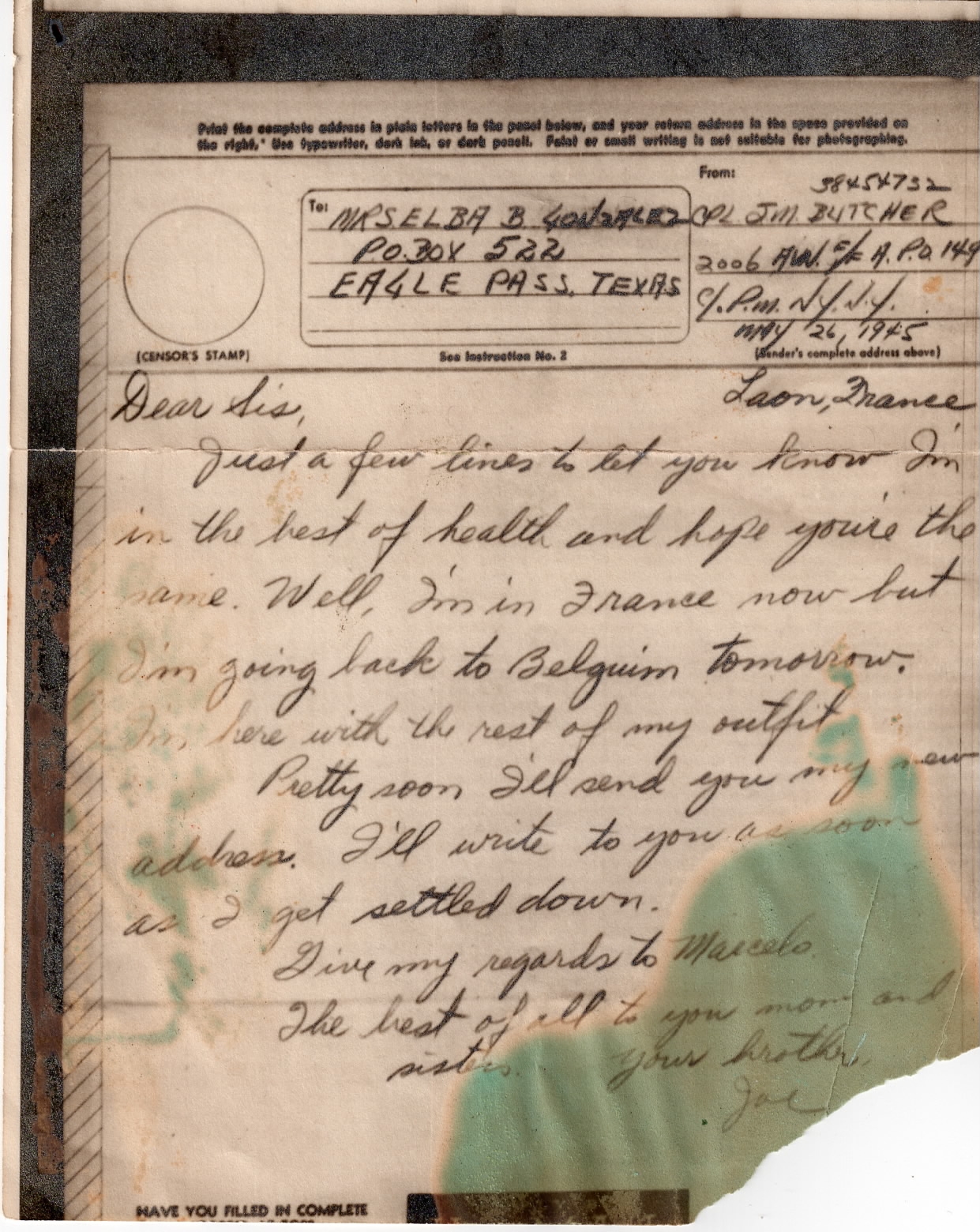 I was ready to join but my mom and dad wouldn't let me because I was only 17 years old, when I turned 18 years old I could join but I had to wait my turn to be drafted by then. I was drafter at 19 years old- took basic training and trained for job I was to do. I landed in England Oct. 7, 1943 and turned 20 years on Oct. 22, 1943.